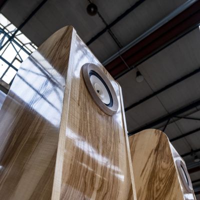 Each pair is designed according to the customer's individual requirements: From the choice of the driver through the finish (raw wood, veneer, lacquer or oil) to the use of original elements.